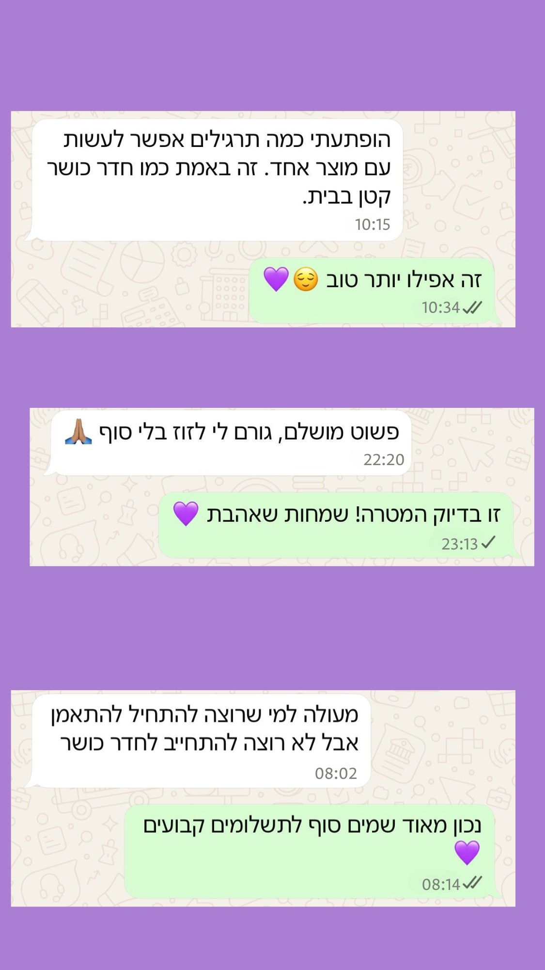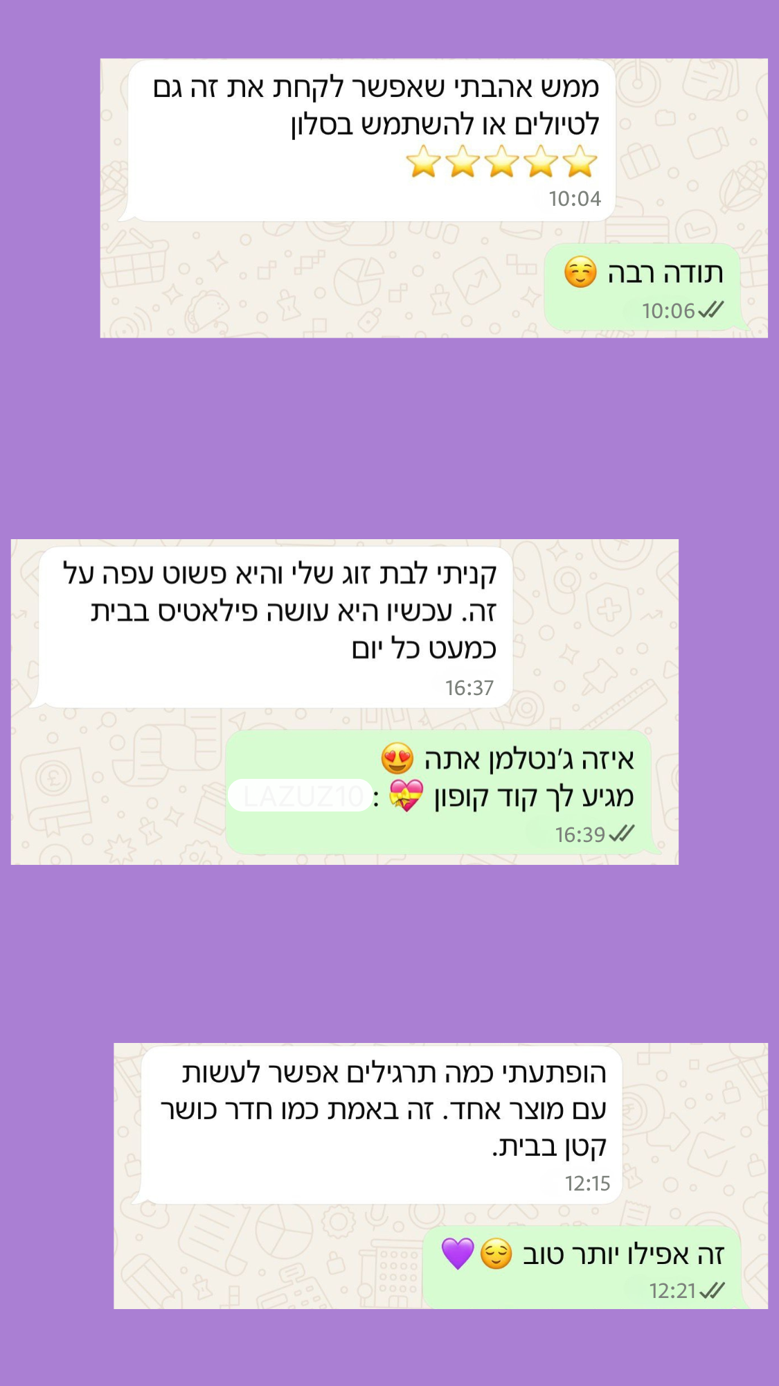 זה משתנה מאישה לאישה, אבל רוב הלקוחות מדווחות שהן מרגישות שינוי כבר אחרי שבוע-שבועיים בשימוש קבוע של 10-15 דקות ביום.